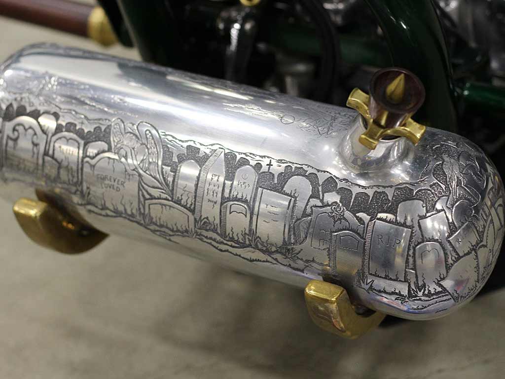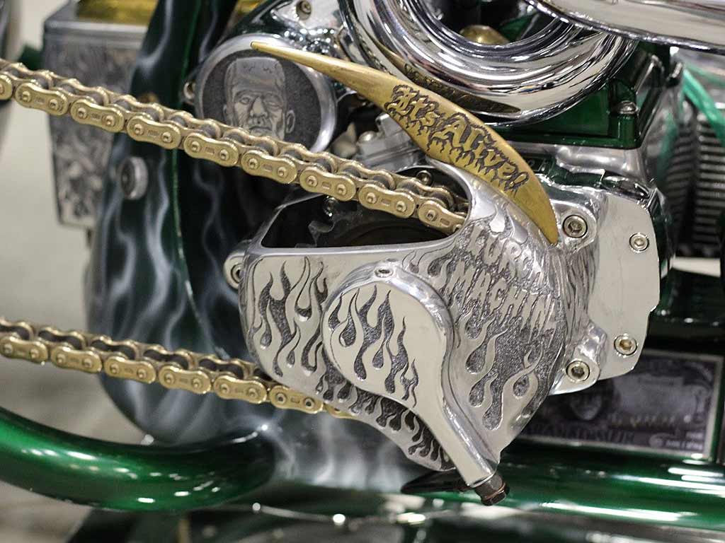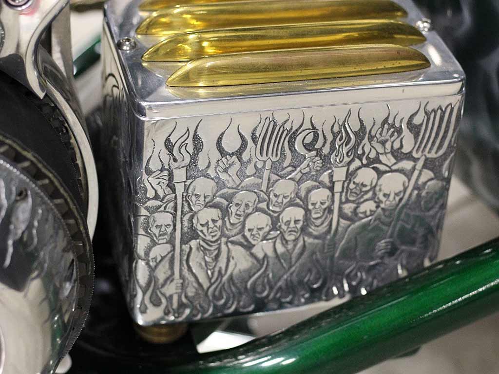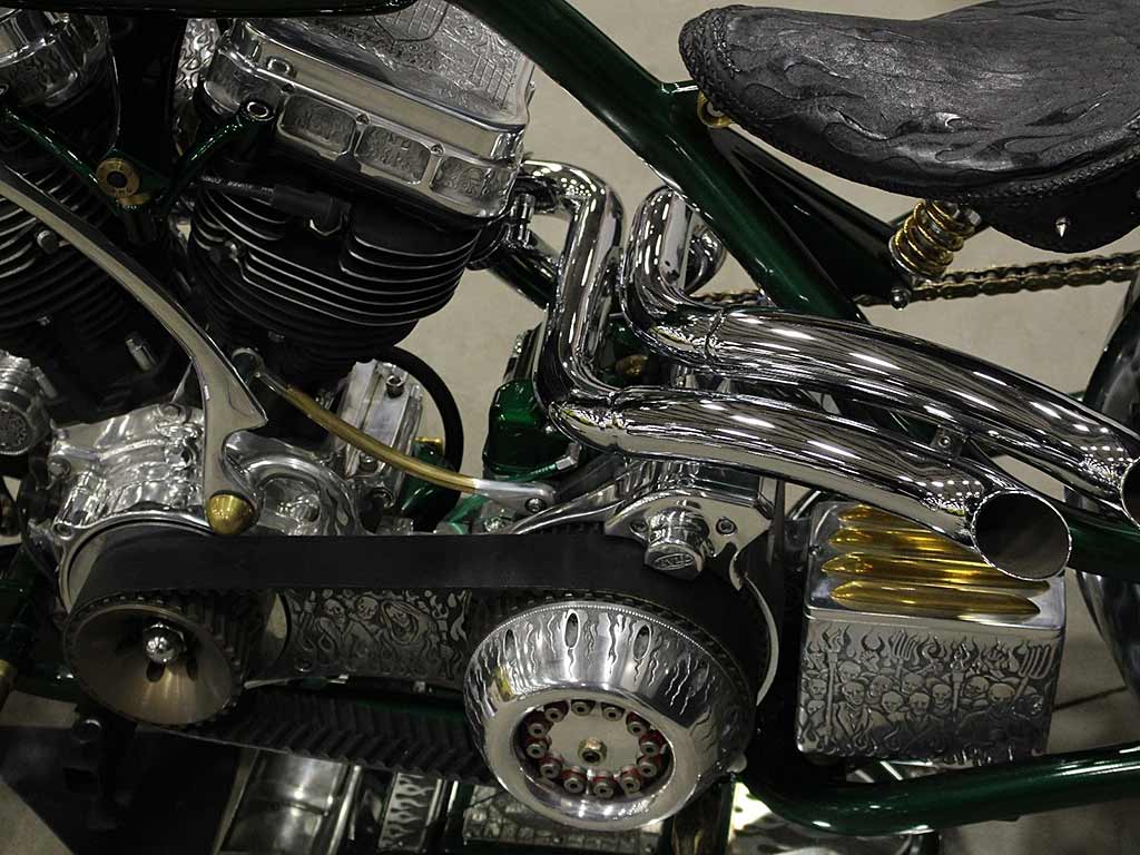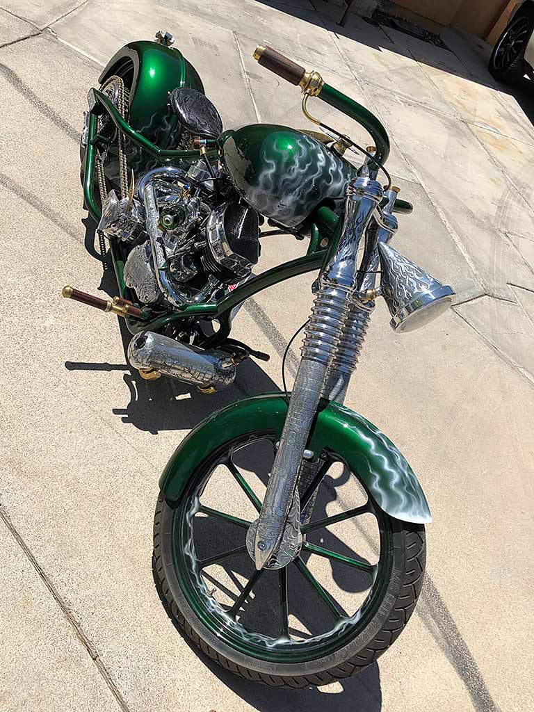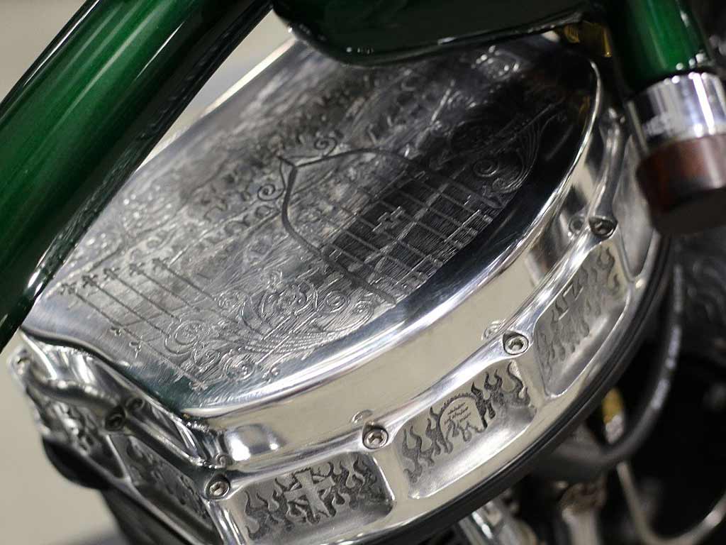 Harley Davidson design, custom hand built. VIN: #UDP28020060000001. This motorcycle has had a complete restored build, using extensive new and hand modified parts. It still represents a Harley Davidson, featuring a custom built “S&S”, 93”ci, Panhead motor, with a custom build HD-4 speed transmission. Attached to the transmission is a highly detailed/hand built shifter.