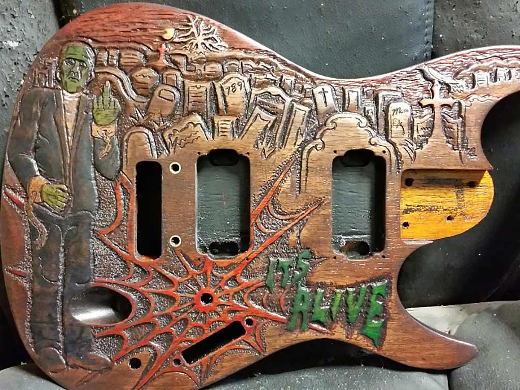 Jeff 'Lurch' Kazakoff takes Lurch Machine into the magical mystery tour with his guitar work. Check these out or better yet, Lurch out your axe with a one-of-a-kind, custom carving and painting.